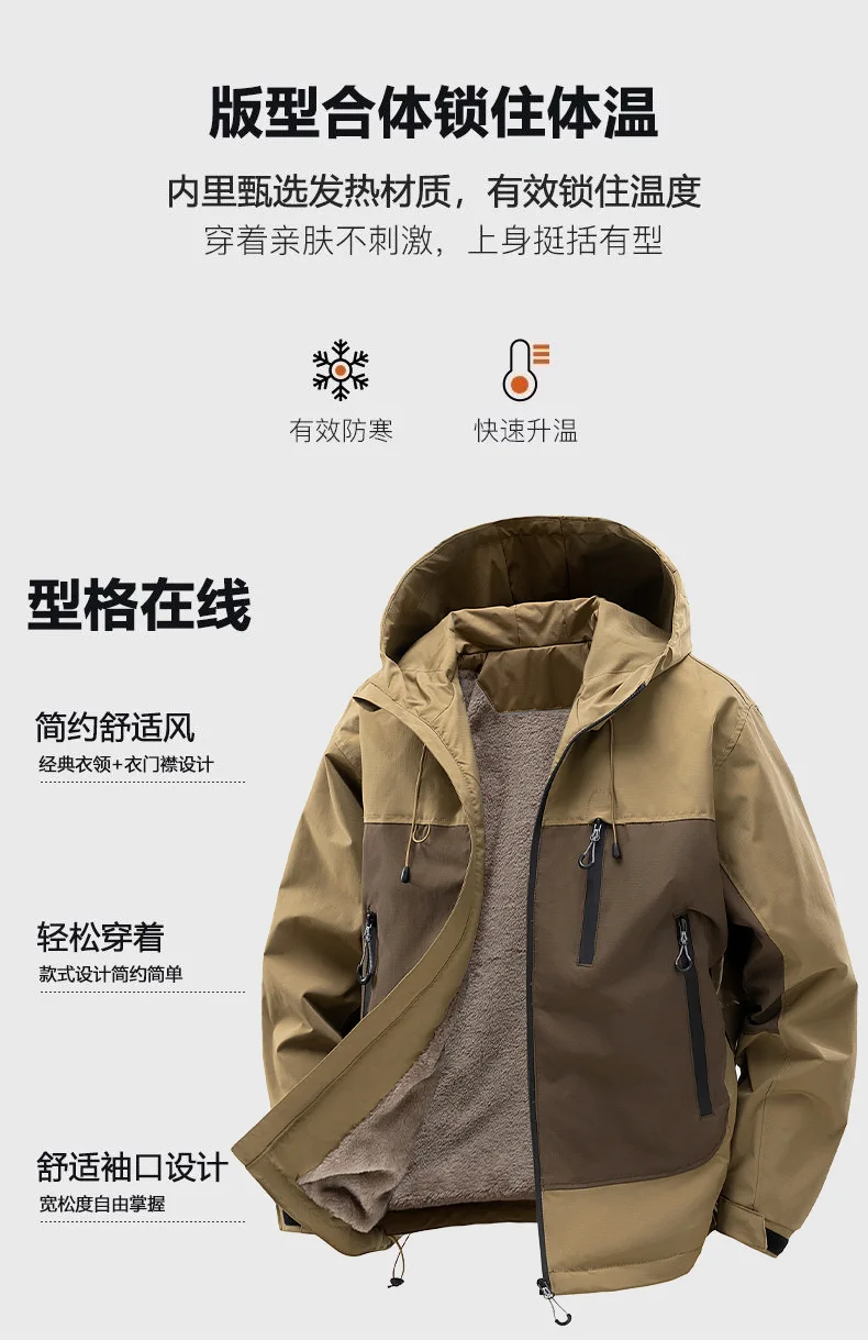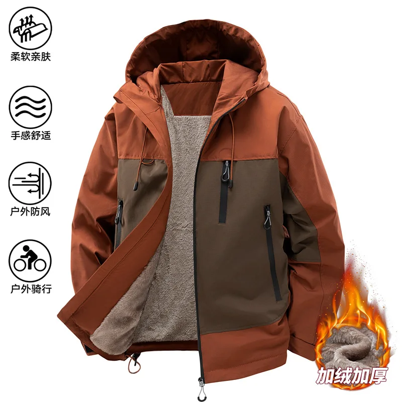 Men's Fleece-Lined Sports Jacket for Autumn & Winter, Waterproof Quick-Dry Fabric, Versatile Outerwear for Cycling & Sports